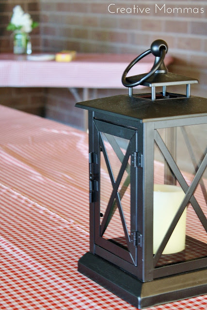 There were quite a few tables to cover and this red & white plastic tablecloth roll was perfect to cover outdoor picnic tables. You can find it at Oriental Trading.